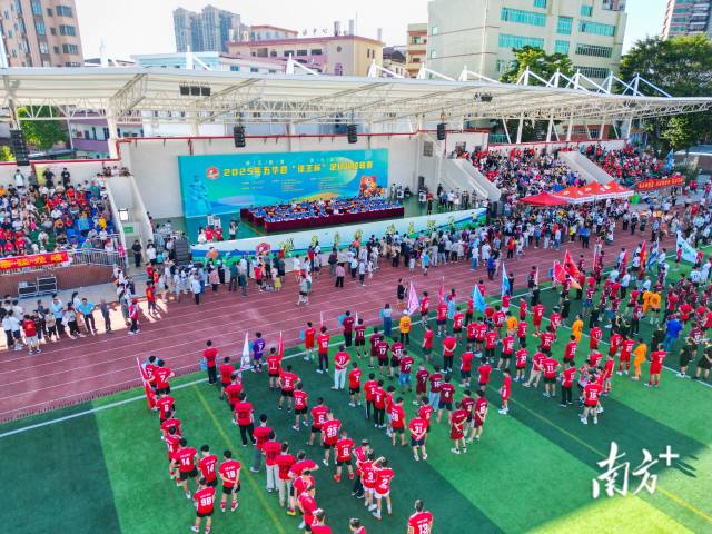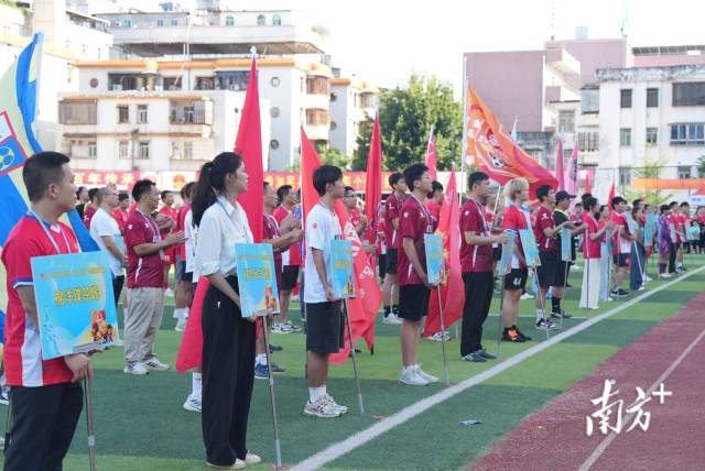 入场环节,裁判组、16个乡镇代表队依次入场,全场气氛热烈,观众球迷为各自心仪的球队加油助威。随后全体起立共唱国歌,运动员、裁判员代表进行宣誓,最后由钟秀堂宣布2025年五华县“球王杯”足球超级联赛开幕。