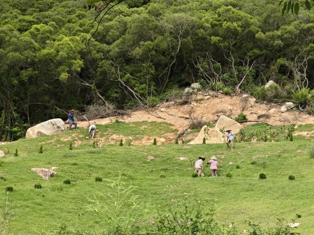 “改”,通过覆土植绿或在周边种植常绿植物、草皮、绿网覆盖等措施进行有效遮挡,在尊重传统习俗的基础上,实现“见树不见坟”的整治效果。截至目前已完成38处老坟改造。